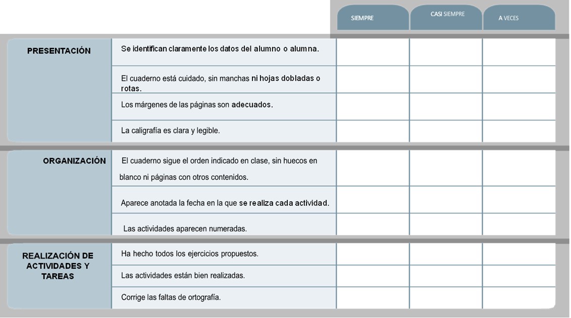 Recuerda que la evaluación es un proceso de reflexión y mejora. Las evidencias de aprendizaje sirven para intervenir y reconducir el proceso de enseñanza aprendizaje. Se evalúan, por lo tanto, los productos que se vayan generando en las diferentes situaciones de aprendizaje. La ponderación que otorgamos a cada producto nos permitirá evaluar el nivel de desempeño alcanzado por el alumnado. Un mismo producto puede ser evaluado a través de uno o varios criterios de evaluación, y movilizará varios descriptores operativos. Los criterios de evaluación sirven, por tanto, para valorar el nivel de desempeño alcanzado en las tareas. La evaluación debe ser procesual, formativa, y continua.